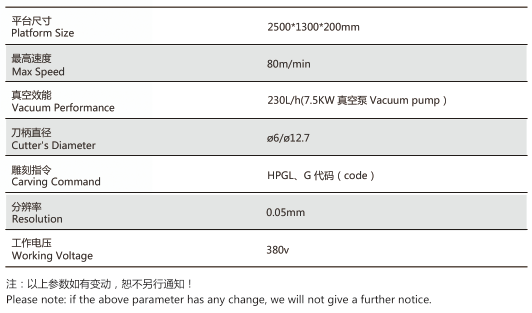 ◆7.5KW恒功率主轴,切面光洁,速度快。可一刀切割20-30mm有机玻璃。